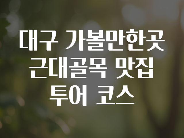 대구 근대골목 맛집 투어 코스 추천 🌟🗺️