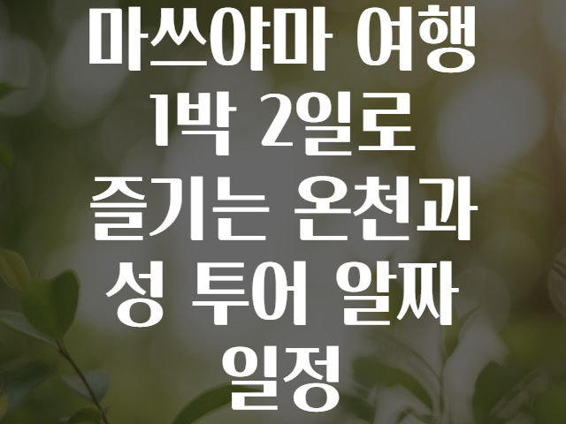 마쓰야마 여행, 1박 2일로 즐기는 온천과 성 투어 🌸♨️🏯