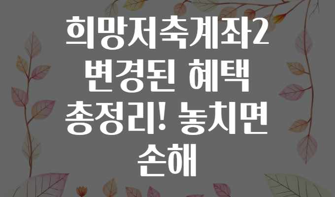 ❓ 희망저축계좌2, 잘 알고 계신가요? 놓치면 손해인 최신 혜택 총정리! 💰🌈